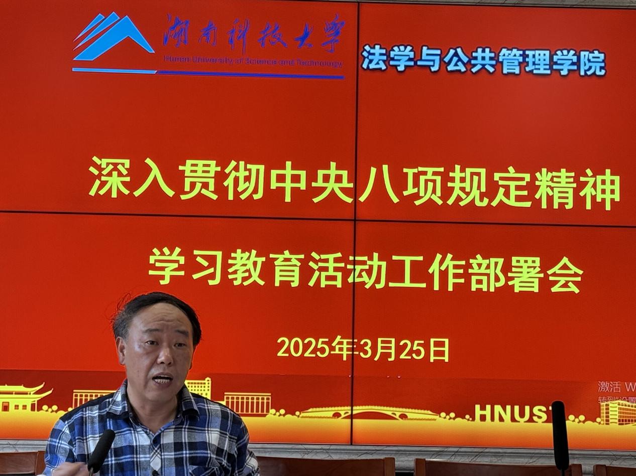 为深入贯彻落实习近平新时代中国特色社会主义思想和党的二十届三中全会精神,巩固深化党纪学习教育成果,进一步加强学院党风廉政建设,推进作风建设常态化长效化,2025年3月25日下午三点,太阳成集团tyc234cc主页在立言楼425召开了深入贯彻中央八项规定精神学习教育工作部署会。本次会议由院党委书记郑海祥主持,学院全体教师党员和师生代表参加。