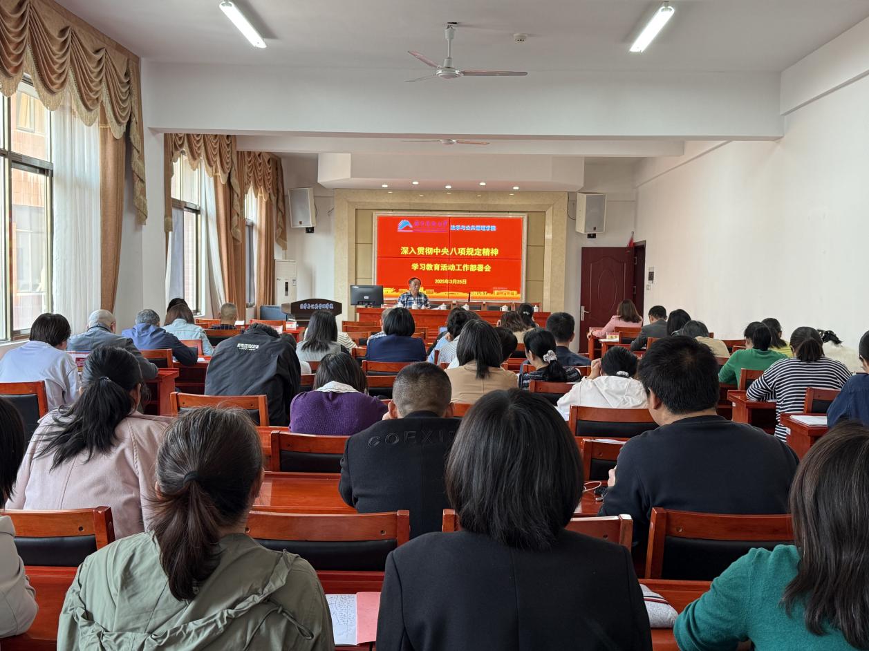 此外,郑海祥书记还对学院下一步的工作进行了部署。他表示,学院将以此次学习教育为契机,进一步完善各项规章制度,建立健全作风建设长效机制,不断巩固和拓展落实中央八项规定精神的成果。同时,学院还将加强监督检查,对违反中央八项规定精神的行为,发现一起、查处一起,绝不姑息迁就,努力营造风清气正的良好政治生态和育人环境。
