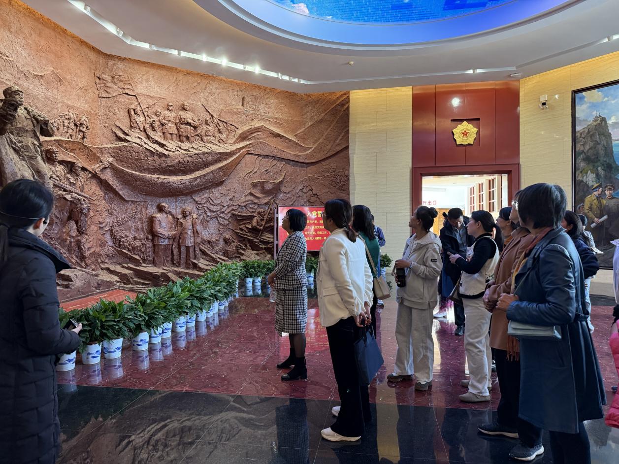 下午1时,全体教师整装出发,首站抵达彭德怀纪念馆,党员和入党积极分子跟随讲解员重温元帅戎马一生的峥嵘岁月。馆内陈列的军装、手稿等文物,生动再现了彭德怀从平江起义到抗美援朝的壮阔历程。在彭德怀故居,教师们驻足于简朴的农家小院,用眼神触摸斑驳的木桌土灶,对比元帅赫赫战功与清贫生活,深刻体悟革命者的精神境界。故居前,金黄的油菜花海随风起伏,教师们漫步花田合影留念,让红色记忆与灿烂春色交织成永恒画面。“这片花海仿佛在诉说:革命者的精神永远如春花般绽放。”行政与公管系教工党支部书记李凤翔博士感慨道。