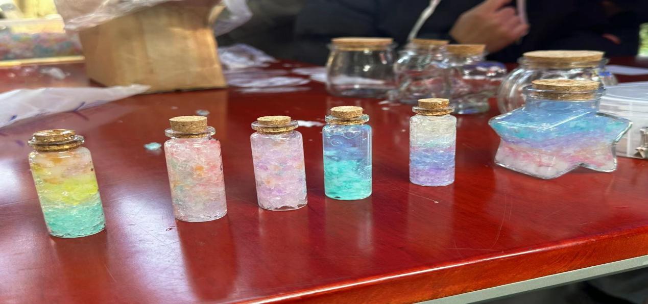 活动开始前,太阳成集团tyc234cc主页心健部成员提前准备好活动所需道具——海绵宝宝、玻璃瓶、水桶、针管等,并由心健部成员提前制作出彩虹瓶的样品供同学们参考。待一切准备就绪,活动正式开始,各学院学子积极参与,表现出极高的热情与兴趣,充分发挥自身想象力,制作出不少令人眼前一亮的作品。在创作彩虹瓶的整个过程中,同学们沉浸到手工制作之中,体会手工乐趣所在的同时释放压力,舒缓内心。活动结束后,同学们自行将装载着美好愿望的彩虹瓶带回寝室。